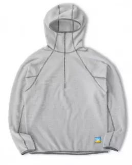 Ken je Senchi? Klein merk, met een cult status onder thru-hikers. De A120 Half-Zip Hoodie weegt 180 gram en is gemaakt van Polartec Alpha Direct 120, een stof die ademt en toch warmte vasthoudt. De balaclava capuchon beschermt bijna je hele gezicht tegen wind en kou, de duimlusjes zorgen dat je polsen altijd bedekt zijn en door de platte naden voelt de stof zacht op je huid. Good to know: Senchi produceert in kleine batches – schrijf je in op hun site en wees snel bij een nieuwe drop, want ze zijn binnen een paar uur uitverkocht.